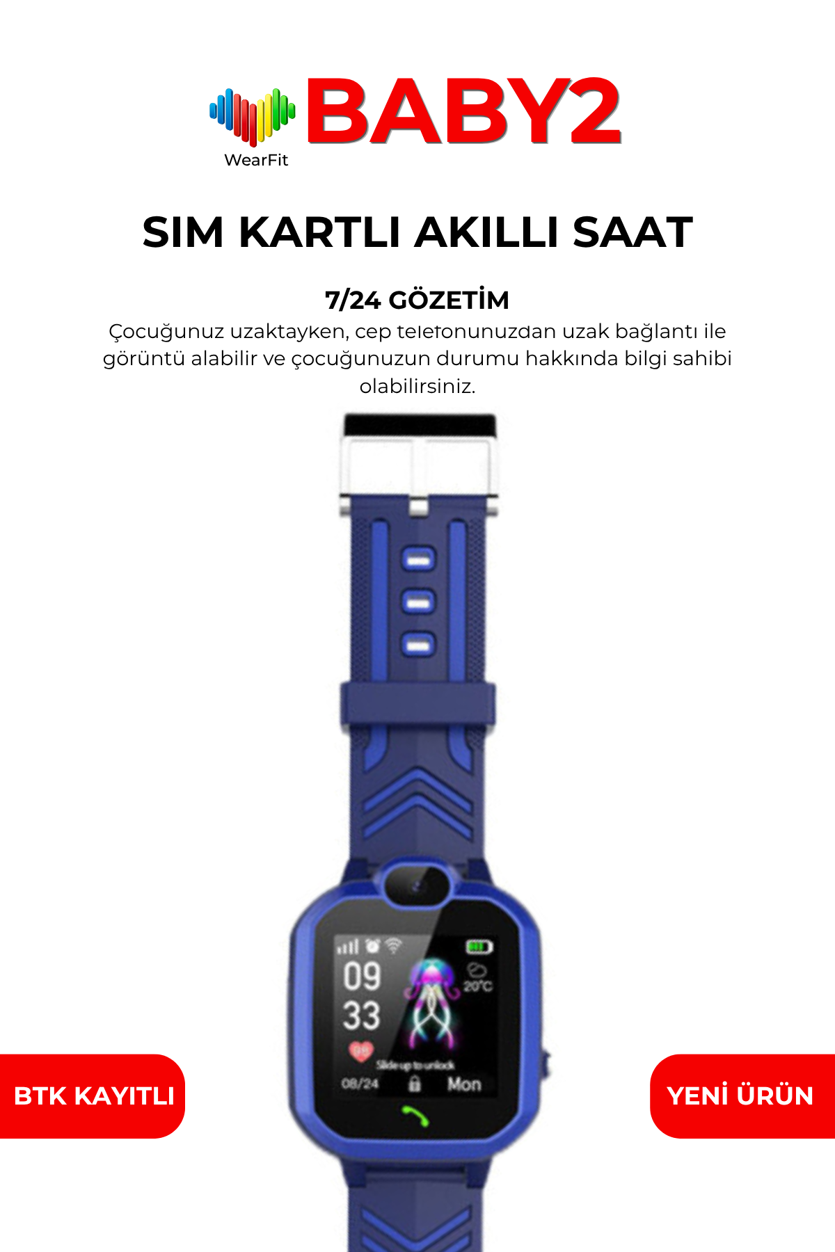 BABY2 Çocuk Akıllı Saat, çocukların güvenliği ve ebeveyn kontrolü için geliştirilmiş çok fonksiyonlu bir akıllı saat çözümüdür. SIM kart desteği sayesinde çocuklar arama yapabilir ve gelen çağrıları yanıtlayabilir. Bu sayede ebeveynler ile sürekli iletişim sağlanır.
