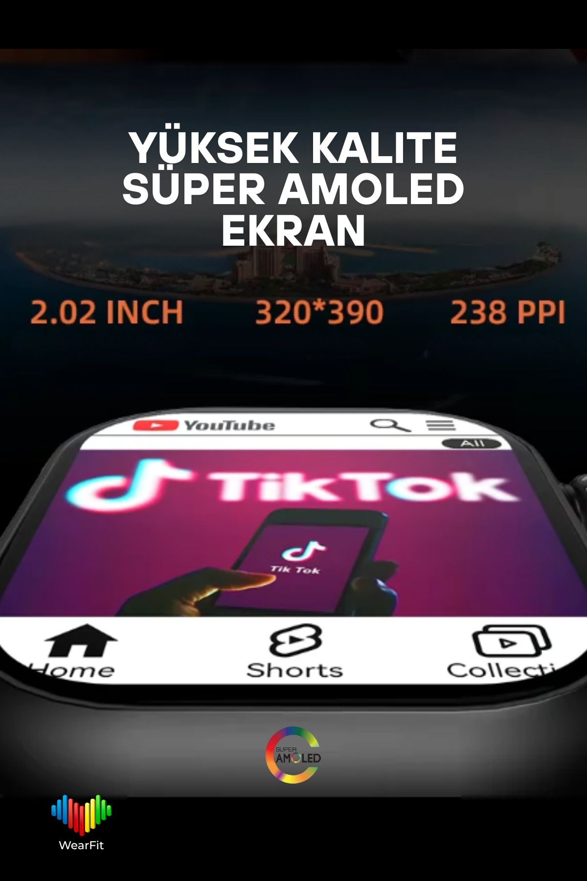 2.02 inç OLED ekranı ile net ve canlı görüntü sunar. 320×390 çözünürlük ile günlük kullanımda yeterli performans sağlar. 700 mAh batarya kapasitesi ile 5 ila 10 gün arasında kullanım süresi sunar.